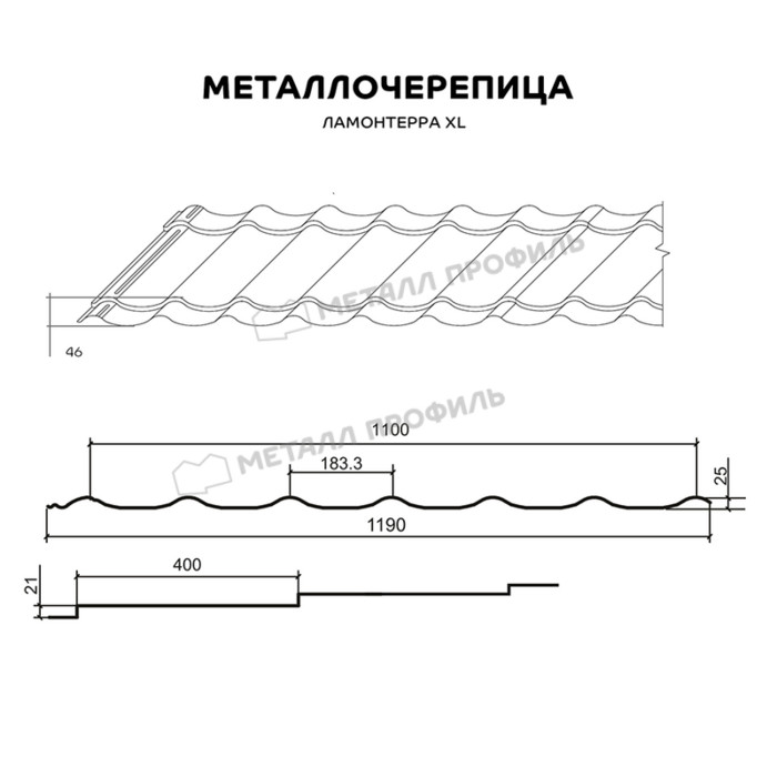Металлочерепица Металл-Профиль Ламонтерра XL 0,45 Полиэстер RAL 7004 Серый Показать информацию